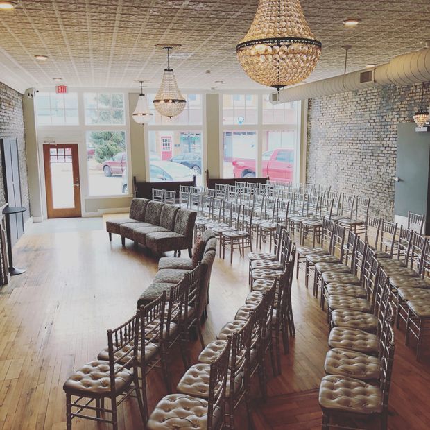 This beautiful building was built originally in 1910 and has been recently restored to its original grandeur with white Tin ceilings, Maple floors, dark brick walls and Marble entry. This space is great for any event!
